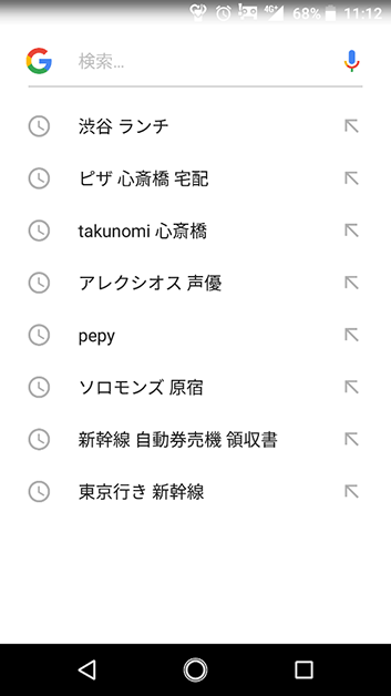 「渋谷 ランチ」とか「東京行き 新幹線」とか、いかにも観光客ですという履歴。恥ずかしい。